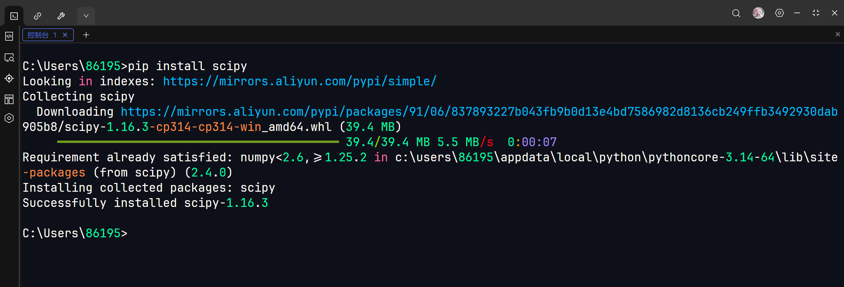 pip install scipy -i https://mirrors.aliyun.com/pypi/simple/