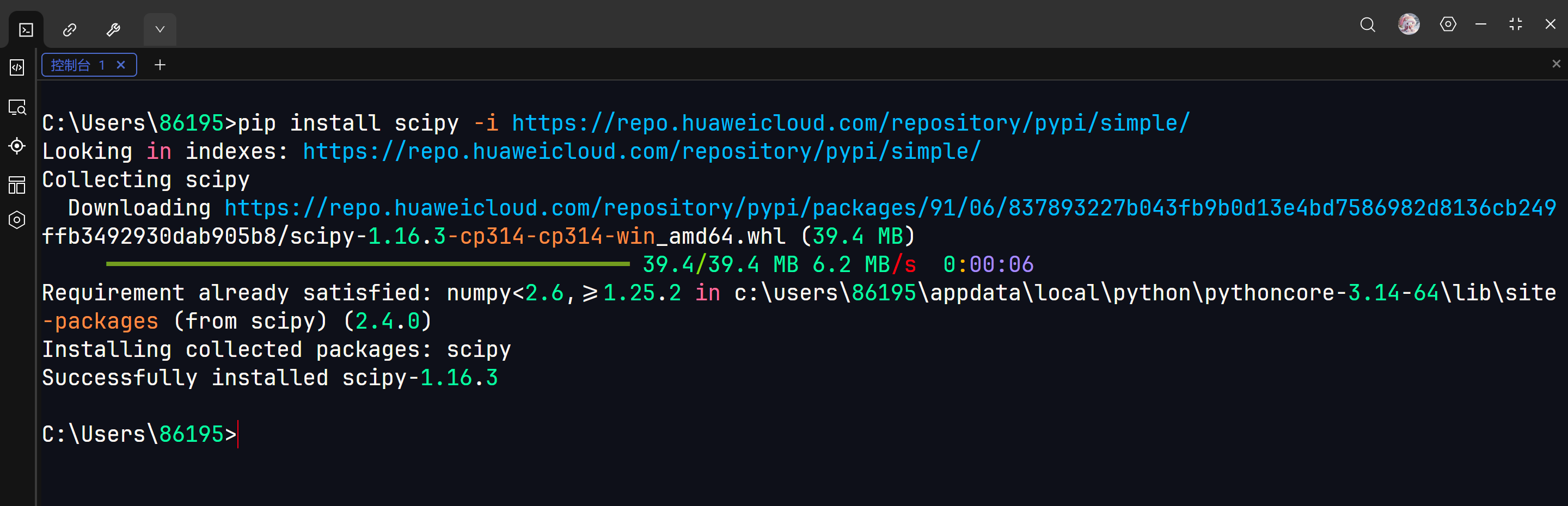pip install scipy -i https://repo.huaweicloud.com/repository/pypi/simple/