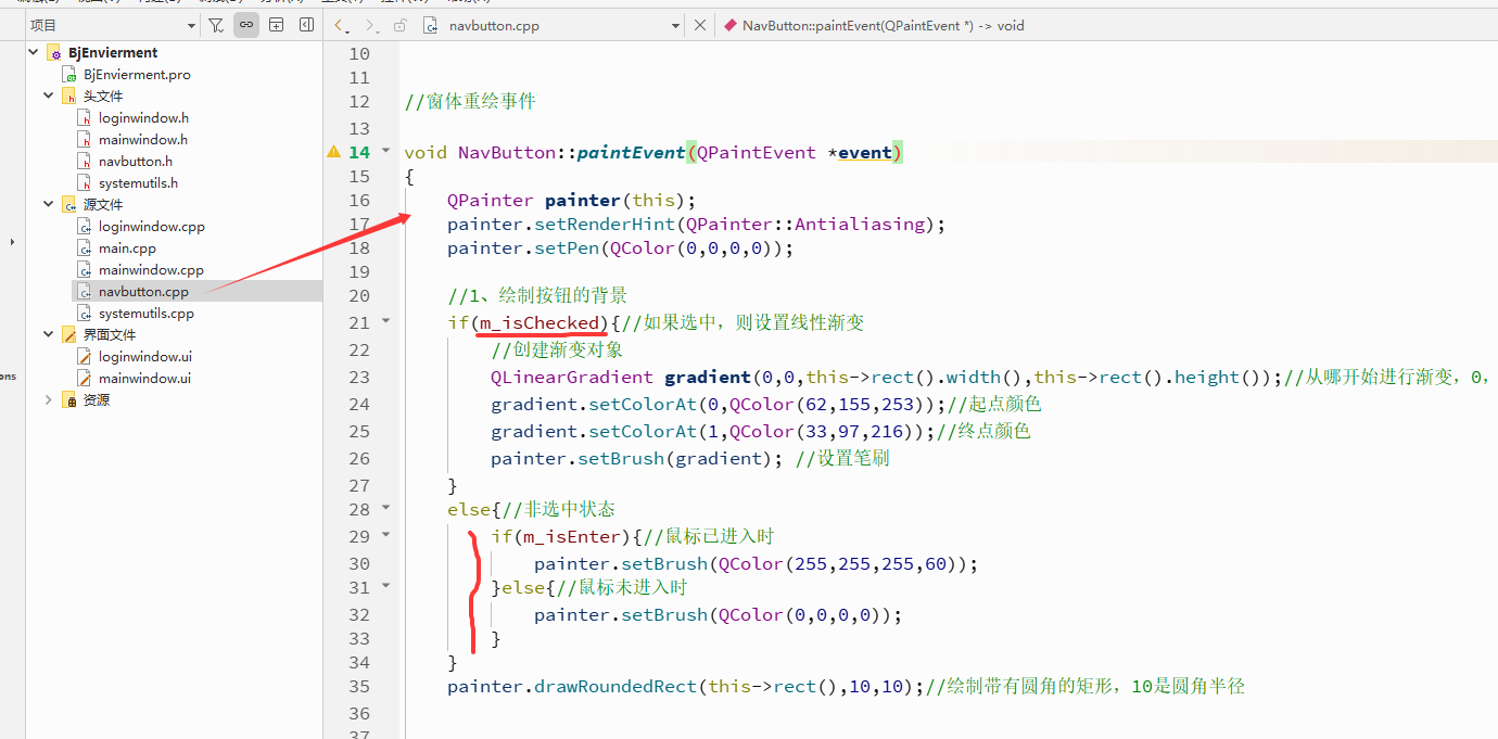 painter.drawRoundedRect(this->rect(),10,10);//绘制带有圆角的矩形,10是圆角半径
