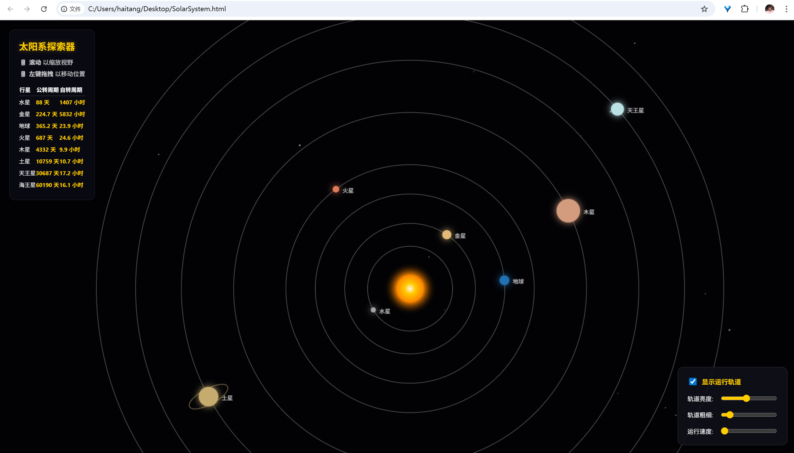 使用 html 和 js 制作太阳系八大行星运行轨道演示动画