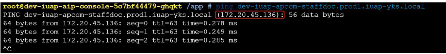 在开发者中心任一服务控制台ping 该地址,获取到对应的ip 地址,如下图: