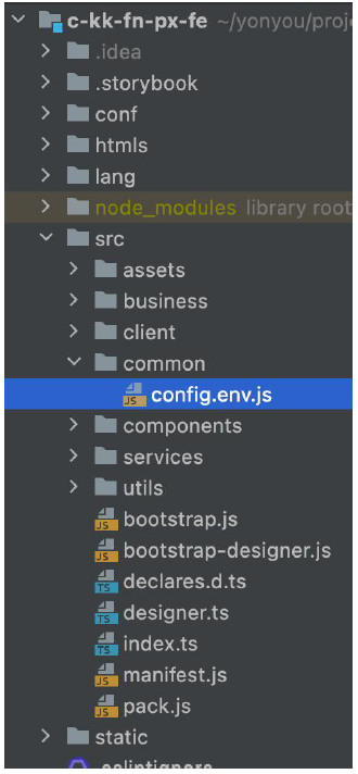 1.配置文件位置:xxxxx-fe/src/common/config.env.js ,如下图: