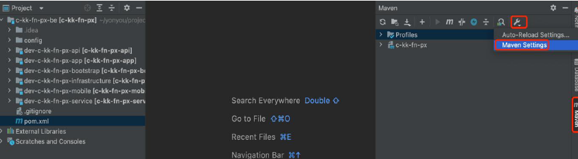 然后,配置工程maven。第一步,打开设置框,如下图: