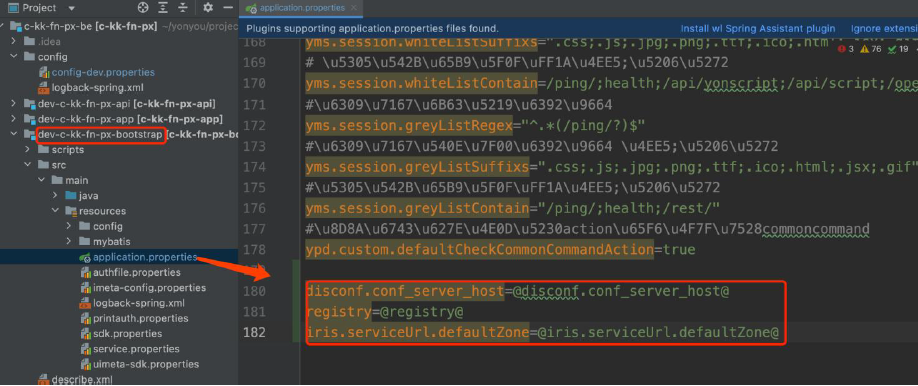然后,修改工程配置文件application.properties ,文件路径及配置项为: