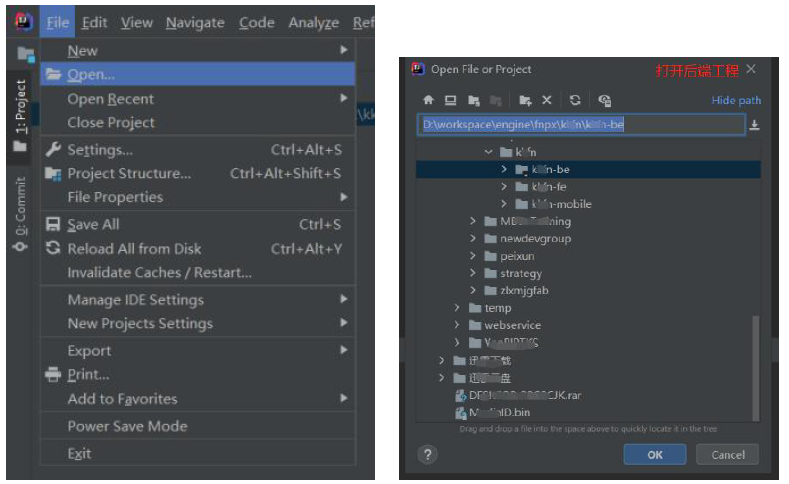 用idea,打开刚下载的脚手架后端工程目录(以be 结尾命名的文件夹),如下图: