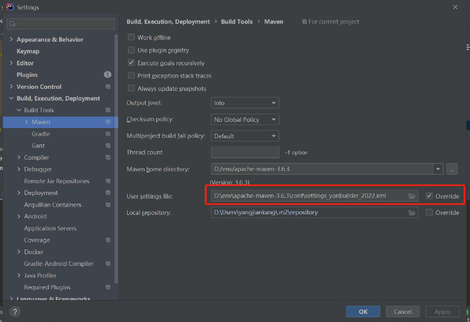 第二步,配置用户设置文件settings_yonbip_2022.xml 并保存,如下图: