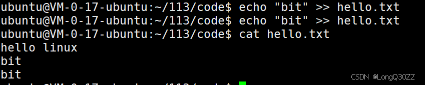 echo "bit" >> hello.txt
