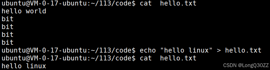 echo "hello linux" > hello.txt