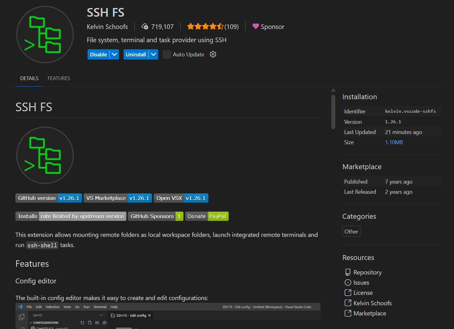 VSCode 官方的 Remote-SSH 会在服务器跑一个 Node.js 进程(即 VS Code Server),所以对系统环境有要求。SSH FS 扩展则不同,它通过 SSH 直接挂载远程文件系统,不依赖服务器端的运行库。