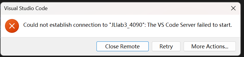 直接使用ssh插件是连接不上的,如下图。这是因为VSCode 自 1.86 版本起 提高了对远程服务器系统库(glibc)的要求。Ubuntu 18.04 默认提供的 glibc 版本是 2.27,而最新版 VSCode 远程服务(VS Code Server)需要 2.28 或更高版本。