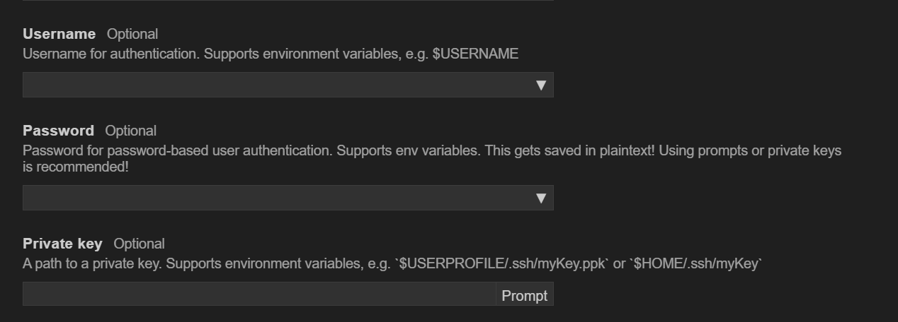 根据个人的远程连接方式(输入密码或者密钥),在上图的部分输入相关的信息。最后点击save完事。