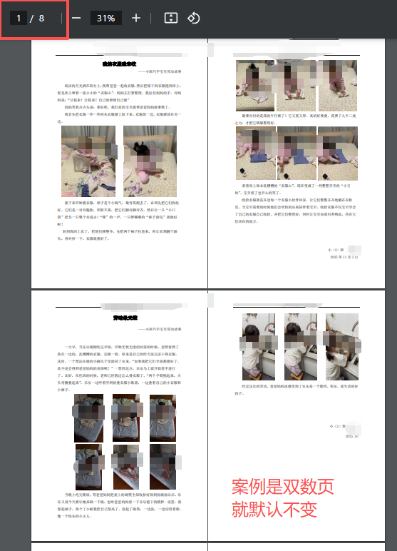 四份劳动故事 所有页合并打印,docx是单数页,就加一个空白页补成双数页,