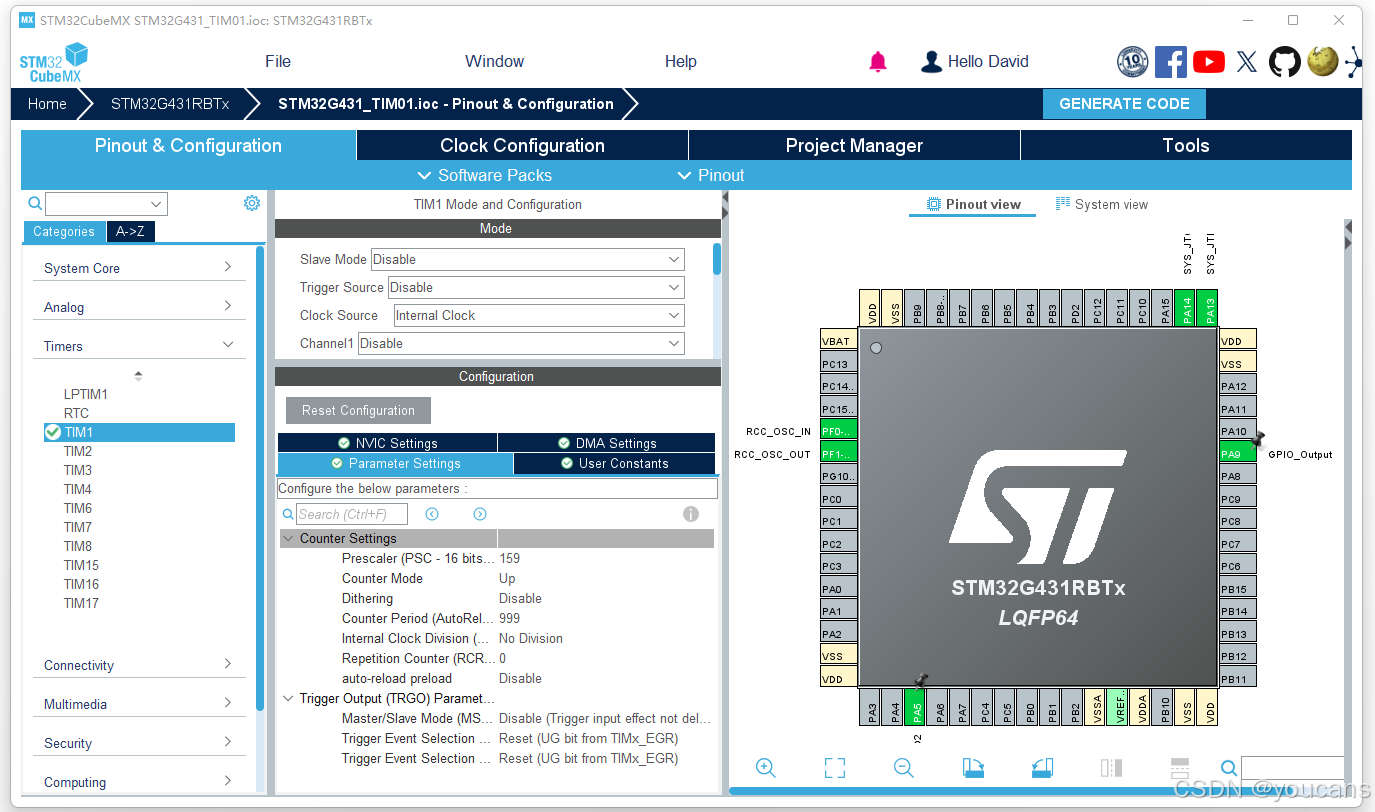 在本项目中,我们将使用STM32G431RB的TIM1定时器实现一个精确的定时功能。