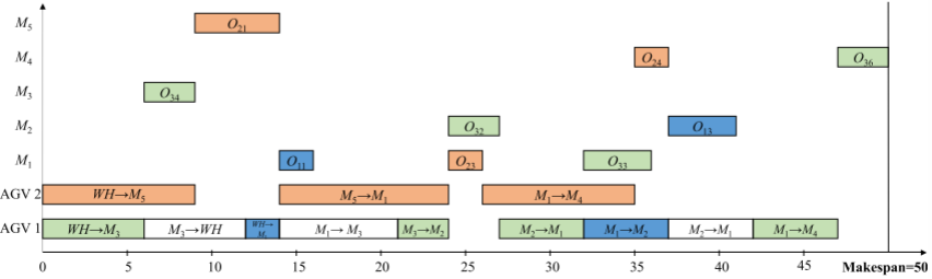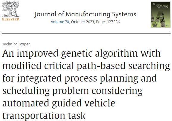 1\] Liu Q, Wang C, Li X, et al. An improved genetic algorithm with modified critical path-based searching for integrated process planning and scheduling problem considering automated guided vehicle transportation task\[J\]. Journal of Manufacturing Systems, 2023, 70: 127-136. ### 5.代码获取 xx ### 6.算法辅导·应用定制·读者交流 xx