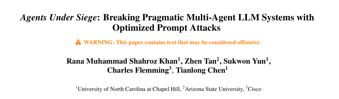 多智能体大模型就像一张协作网:消息在节点间传来传去,每条连接都有带宽限制、会产生延迟,还可能部署不同强度的安全"安检"。这篇工作展示了攻击者如何把一段对抗提示拆成小块,沿着"最安全、最通畅"的路径偷偷送达,并且就算这些小块到达顺序被打乱,攻击仍然有效。