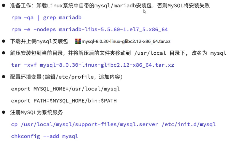 第五步注册为系统服务将他的服务文件加入到系统当中然后在系统启动的时候,它就能自动启动mysql服务步骤分为俩步第一条把 MySQL 的启动脚本放进系统服务目录,第二条把 MySQL 注册成系统服务并加入开机启动管理。