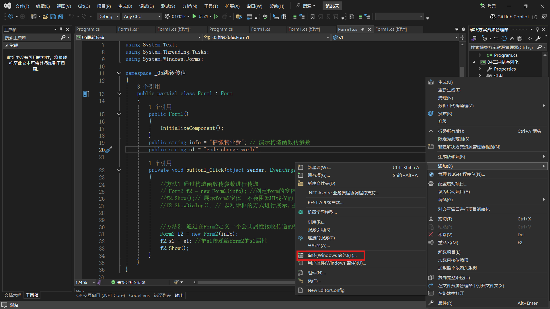 在form1中的代码中写入以下内容