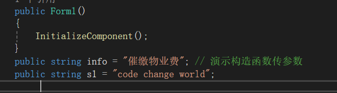public string info = "催缴物业费"; -----演示构造函数传参数
