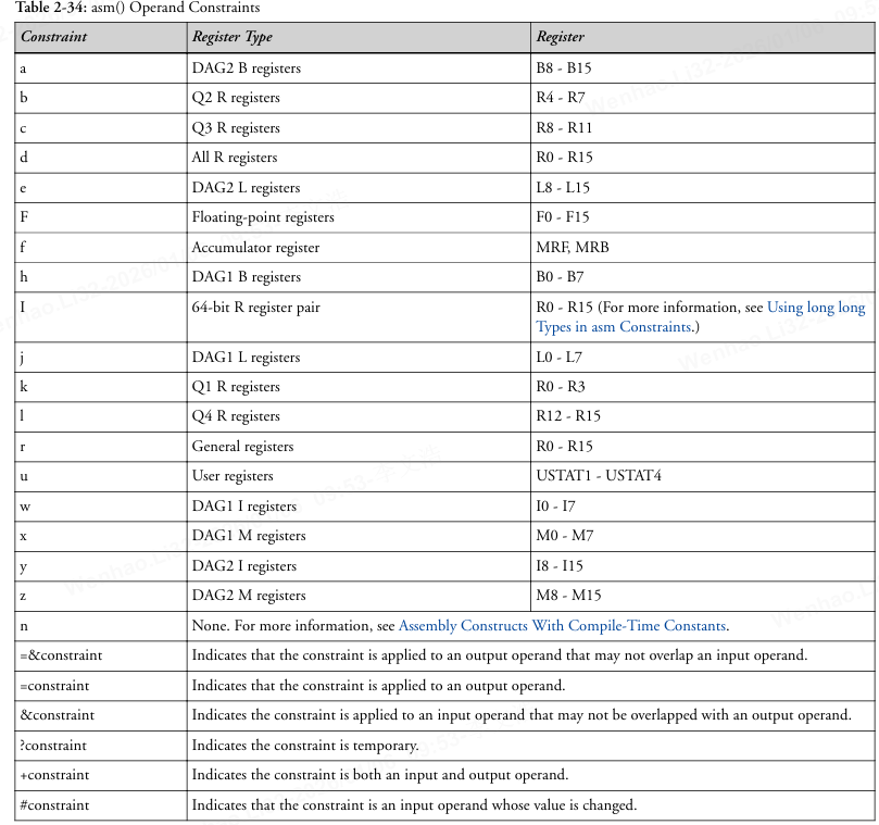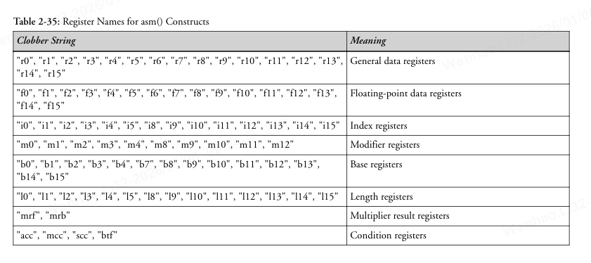 asm()操作数约束表字母和寄存器对应关系