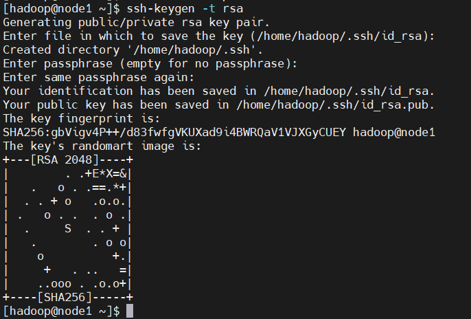 #切换到hadoop用户,生成密钥: