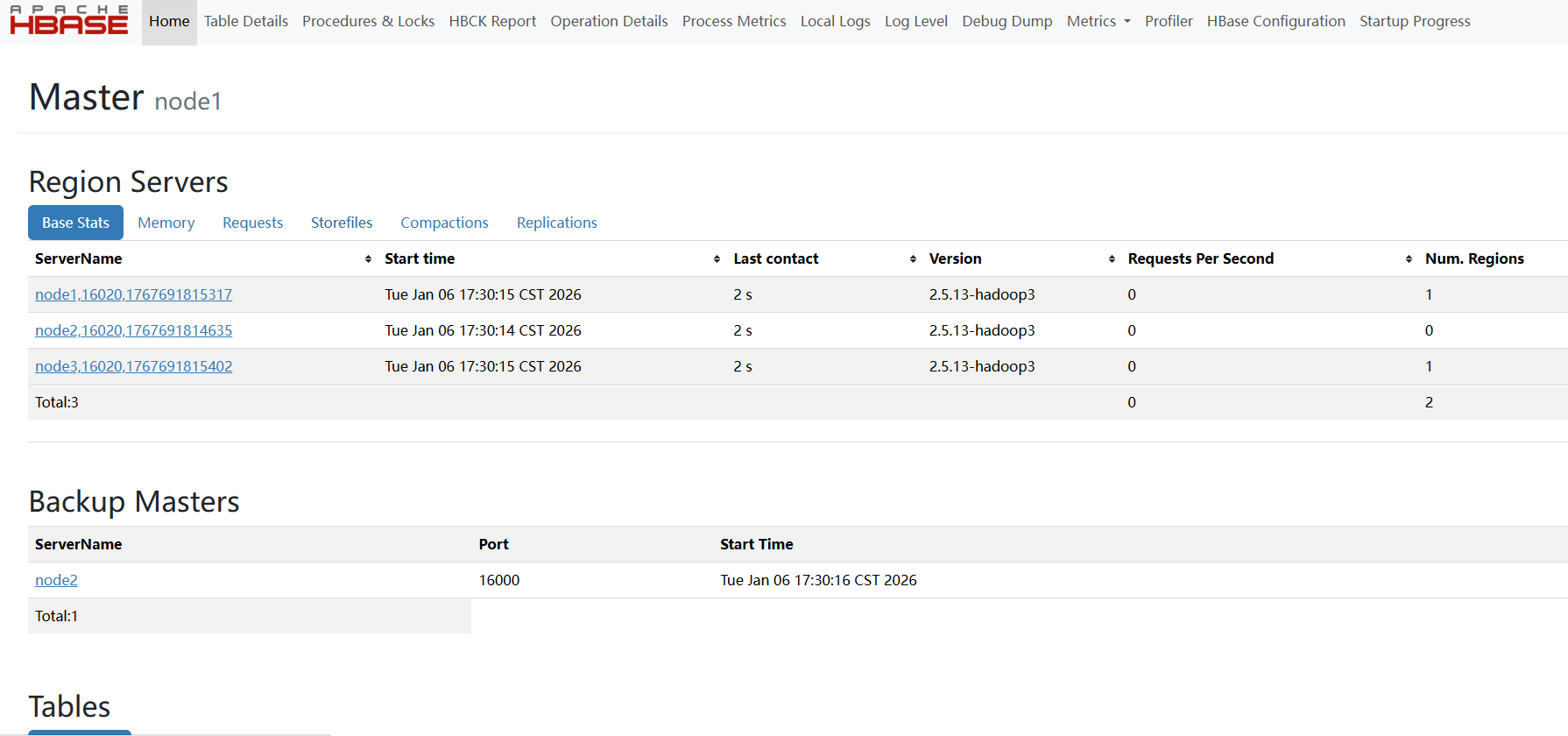 打开浏览器,访问主Master的Web UI(默认端口16010):