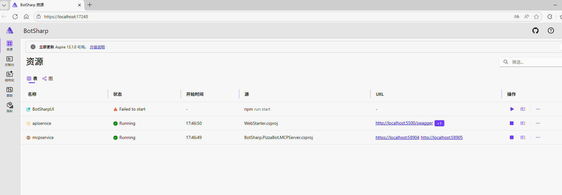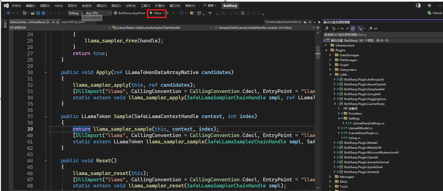 然后生成解决方案,然后进行调试运行,默认是运行BotSharp.AppHost