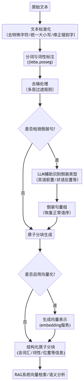 - 全面性:涵盖了从文本标准化到原子分块生成的完整流程