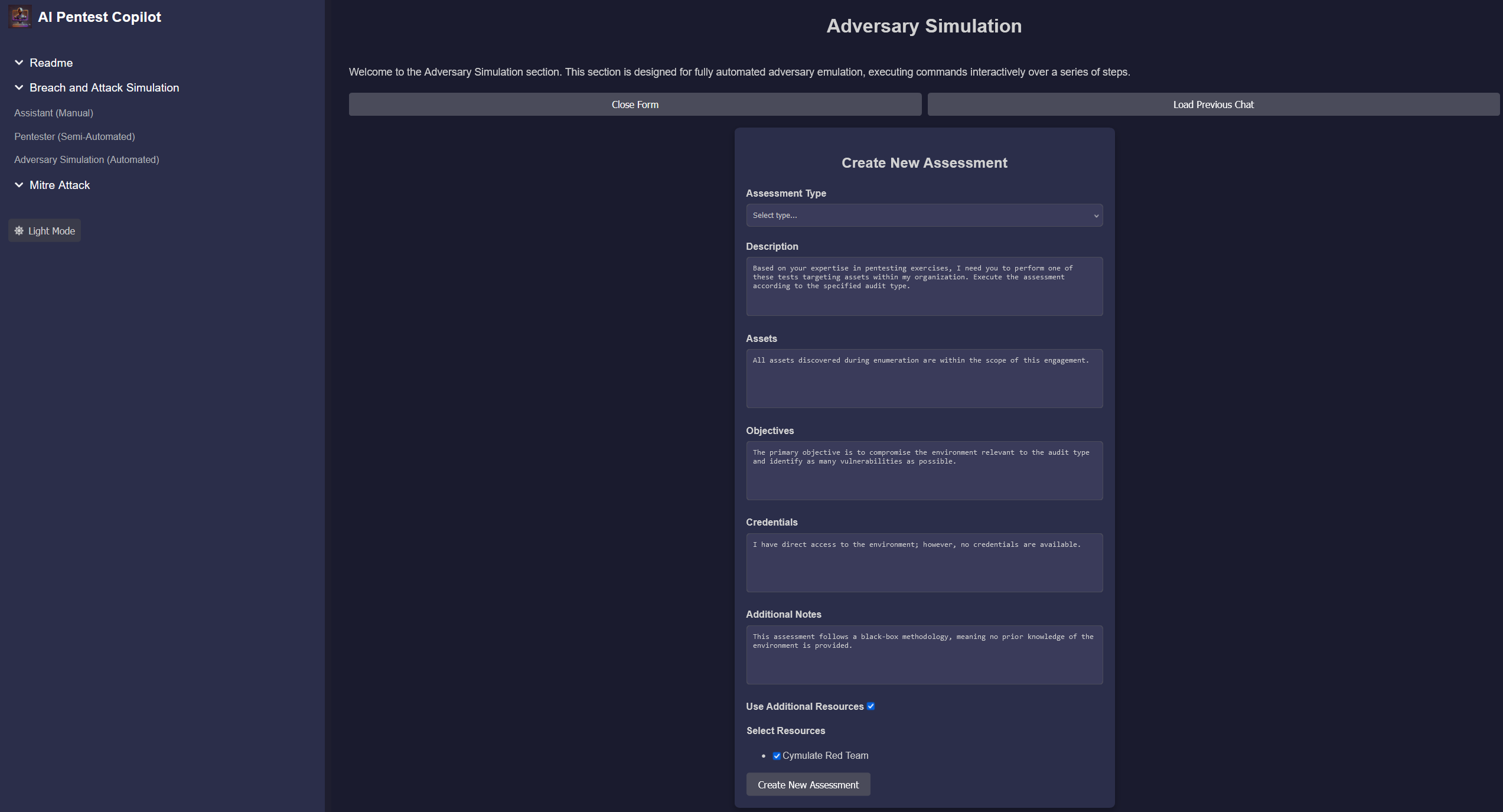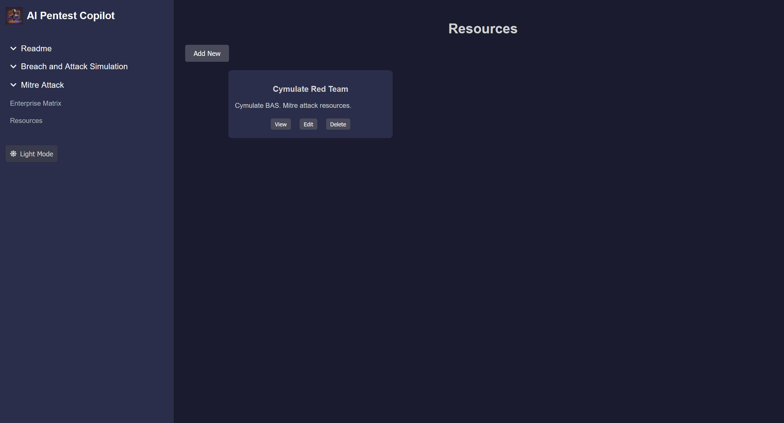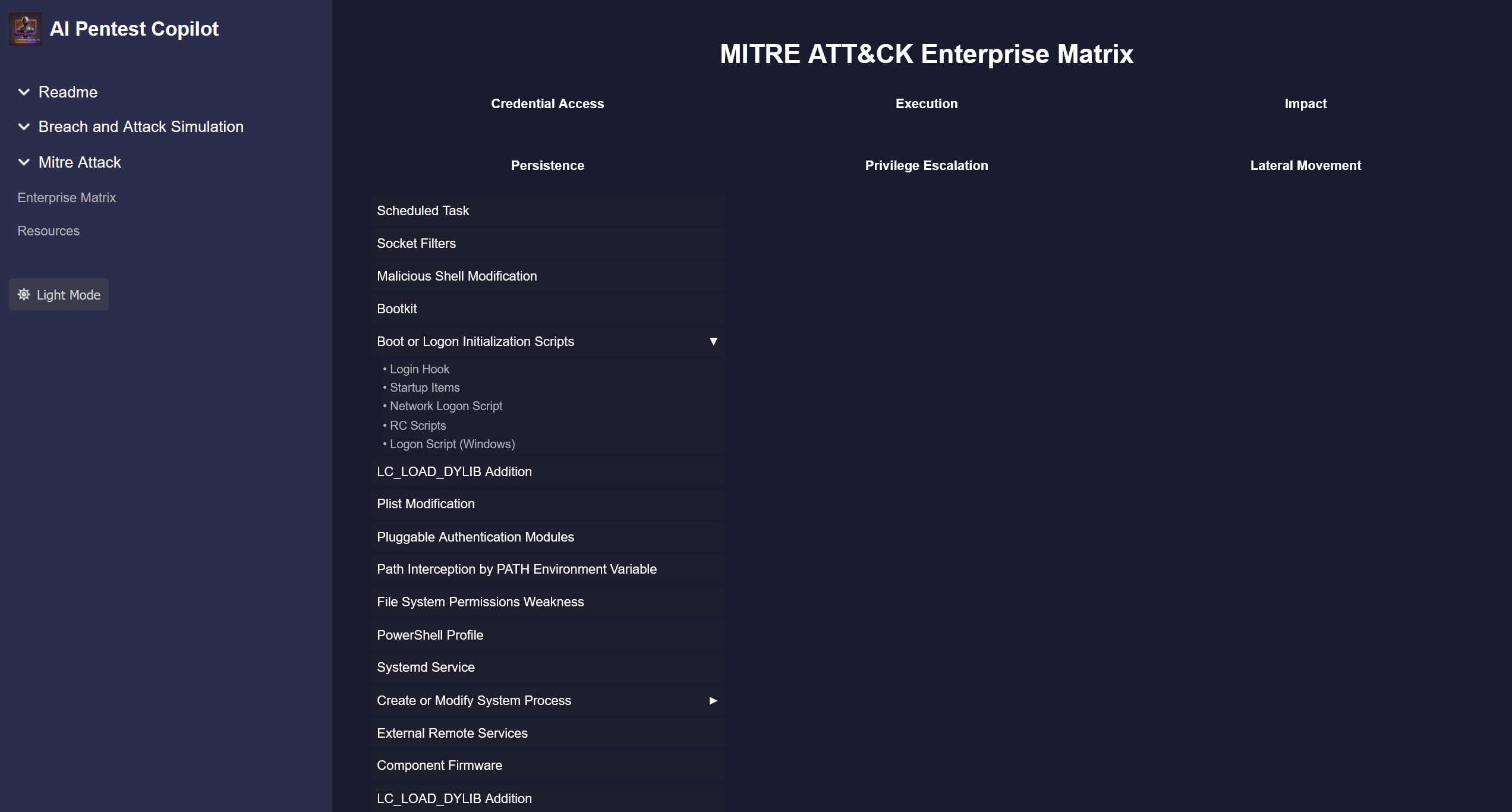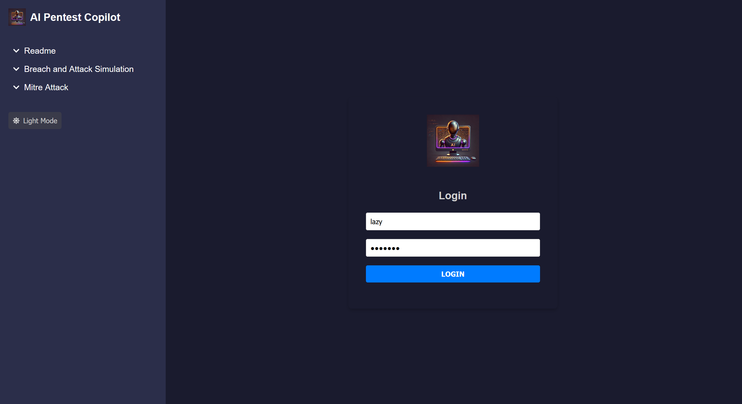 图1:AI Pentest Copilot的登录页面,用户通过认证访问平台。这一步确保了安全的访问和基于角色的正确功能。(默认凭证:懒惰,渗透测试)