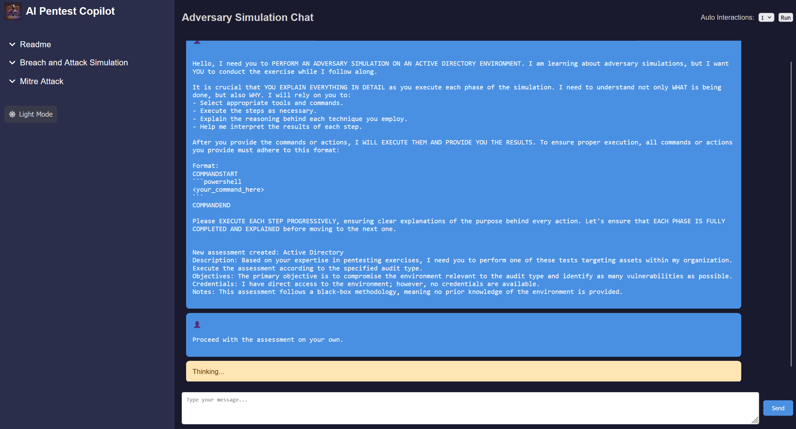 - 渗透测试模式(半自动):用户从AI推荐的动作中选择,非常适合结构化入侵演练。
