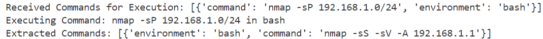 图8:对手模拟聊天界面演示了命令的执行及其结果的分析。该工具可以直接提取并执行命令,并且根据指定次数自动执行。