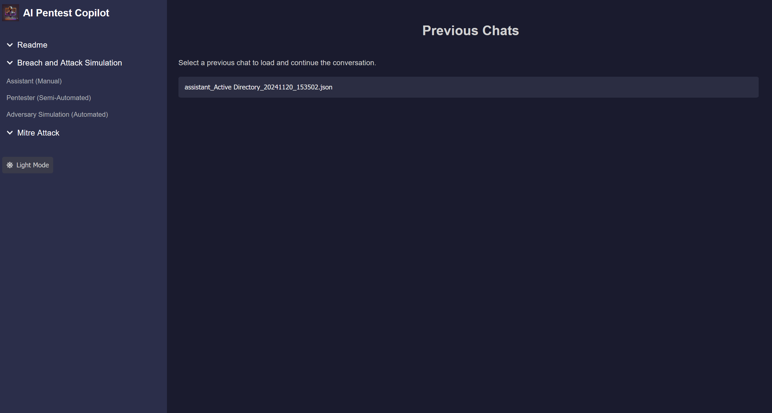 图5:之前的对话和评估列表,允许用户无缝恢复或回顾之前的工作。此功能支持渗透测试的连续性。