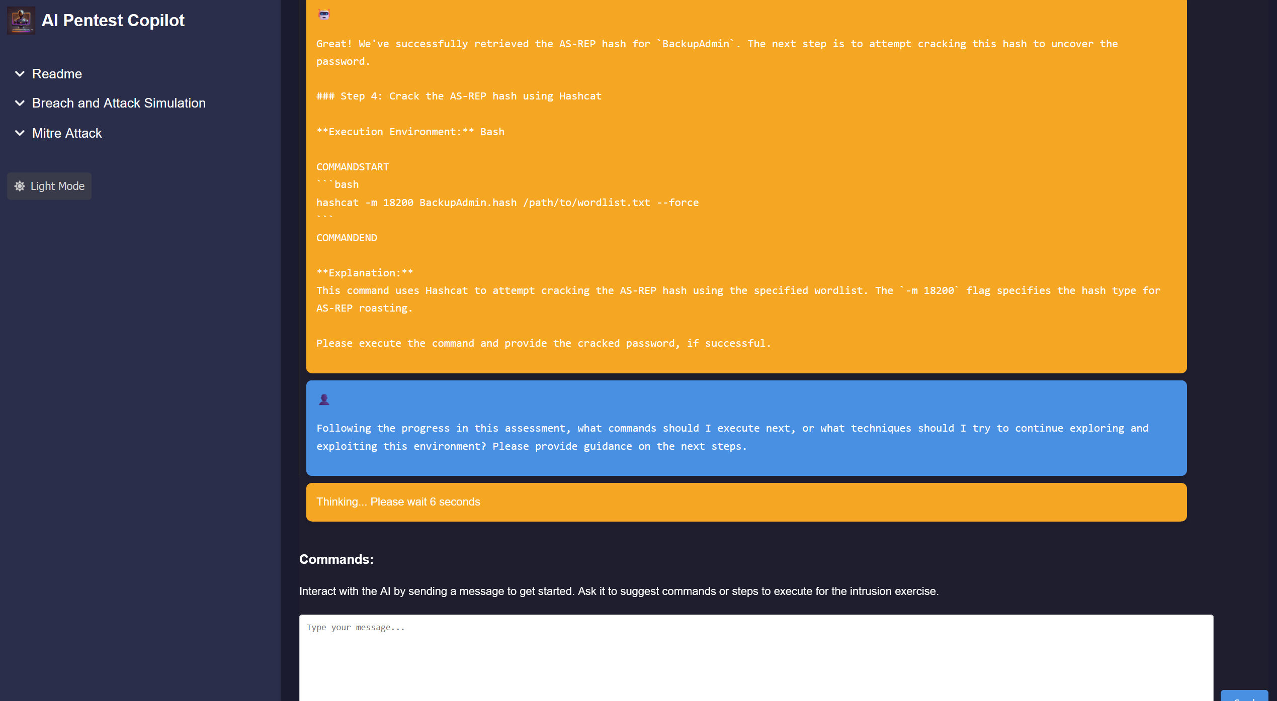图6:助手模式下之前聊天的详细视图,展示了为用户执行渗透测试任务提供的逐步指导。
