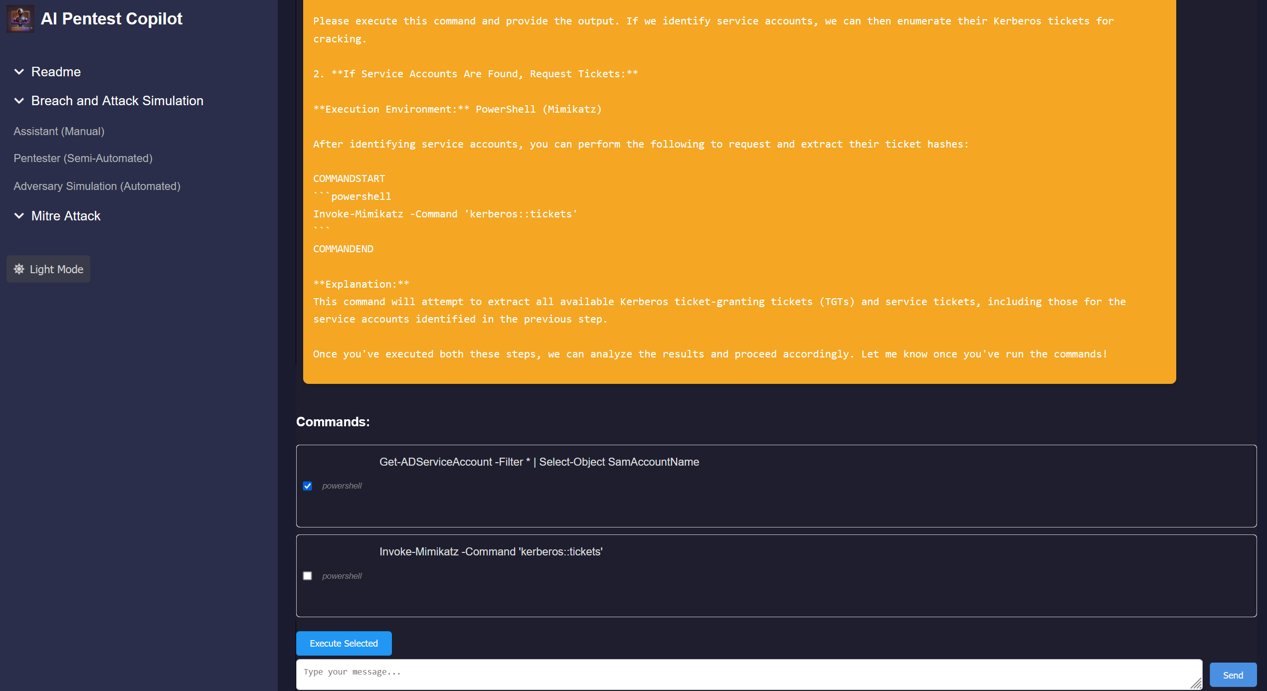 图9:Pentester 聊天界面展示了半自动模式,用户可以收到 AI 推荐并选择执行的特定动作。这种模式非常适合结构化但亲自作的互动。