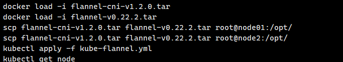 //所有节点上传flannel镜像 flannel.tar 到 /opt 目录,master节点上传 kube-flannel.yml 文件
