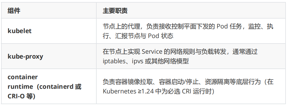 Kubernetes 采用 控制平面 + 工作节点 的主从架构,控制平面负责调度与管理,节点负责运行实际的应用负载。