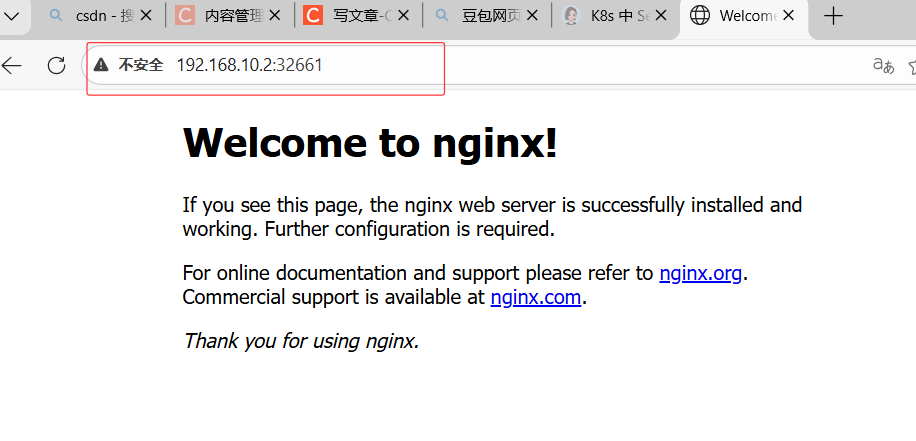 浏览器中输入master01虚拟机IP:32661访问nginx成功。