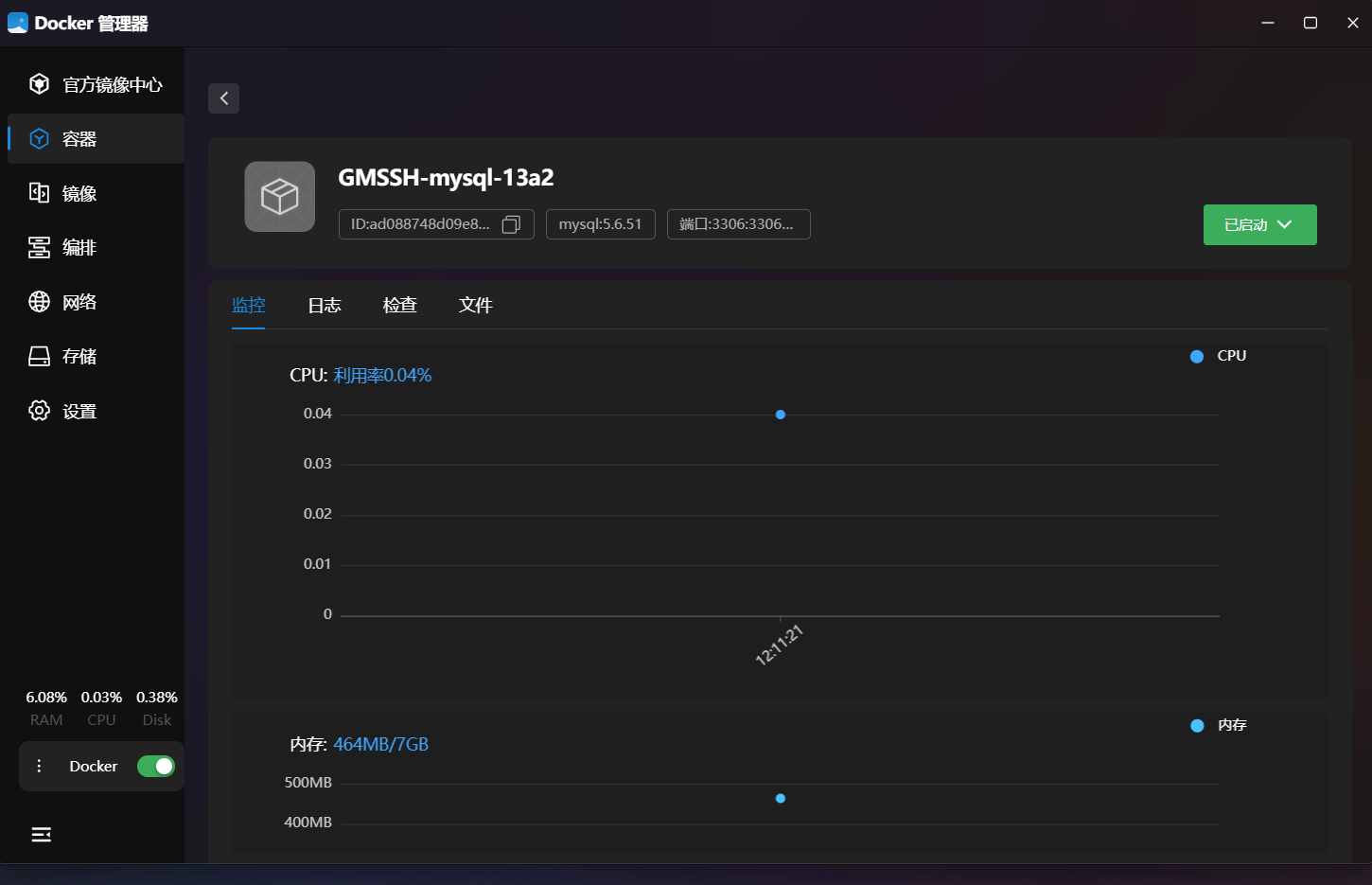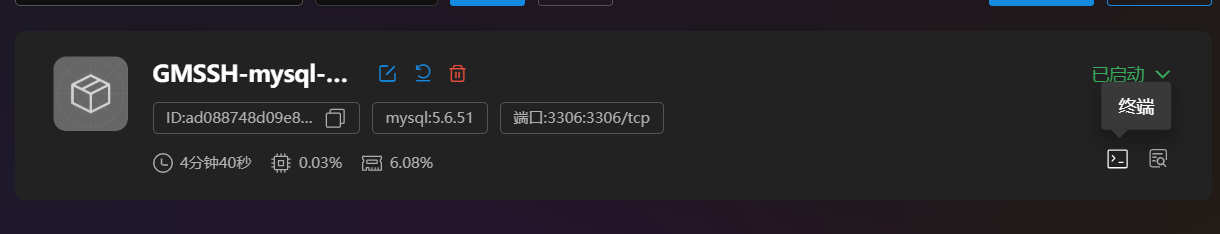 上图确认了MySQL容器已成功启动。