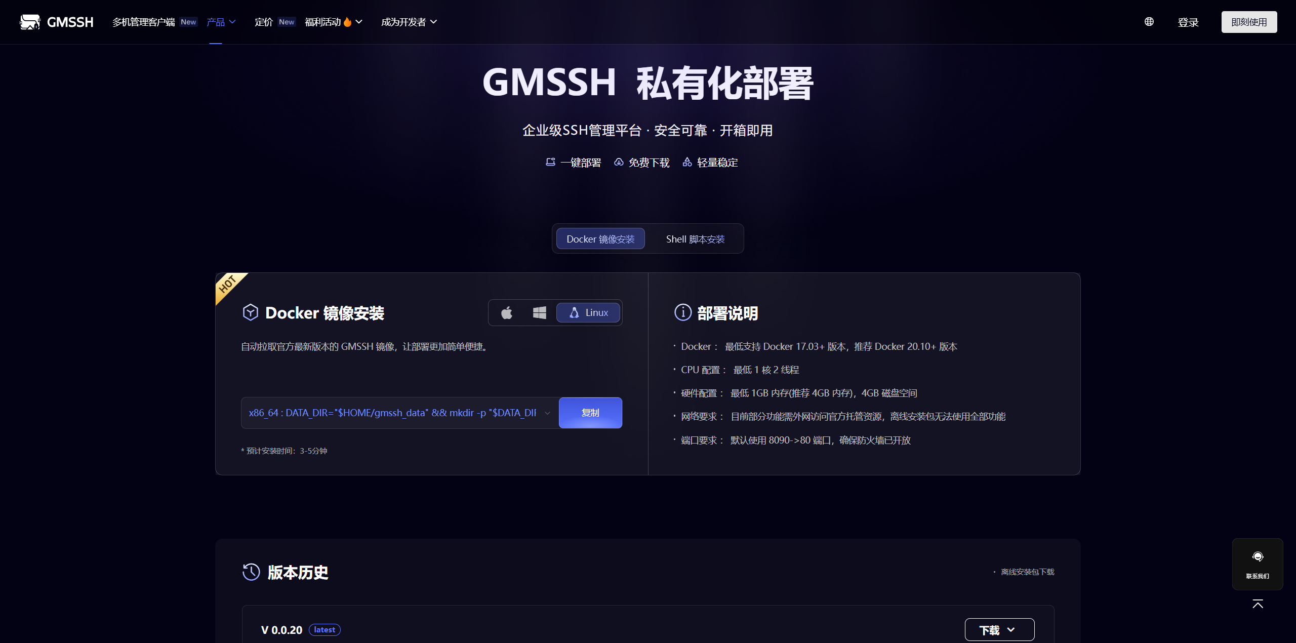 Docker容器化部署是目前企业级应用的主流选择。通过Docker部署GMSSH,可以确保管理环境的隔离性与一致性,同时便于后续的迁移与升级。