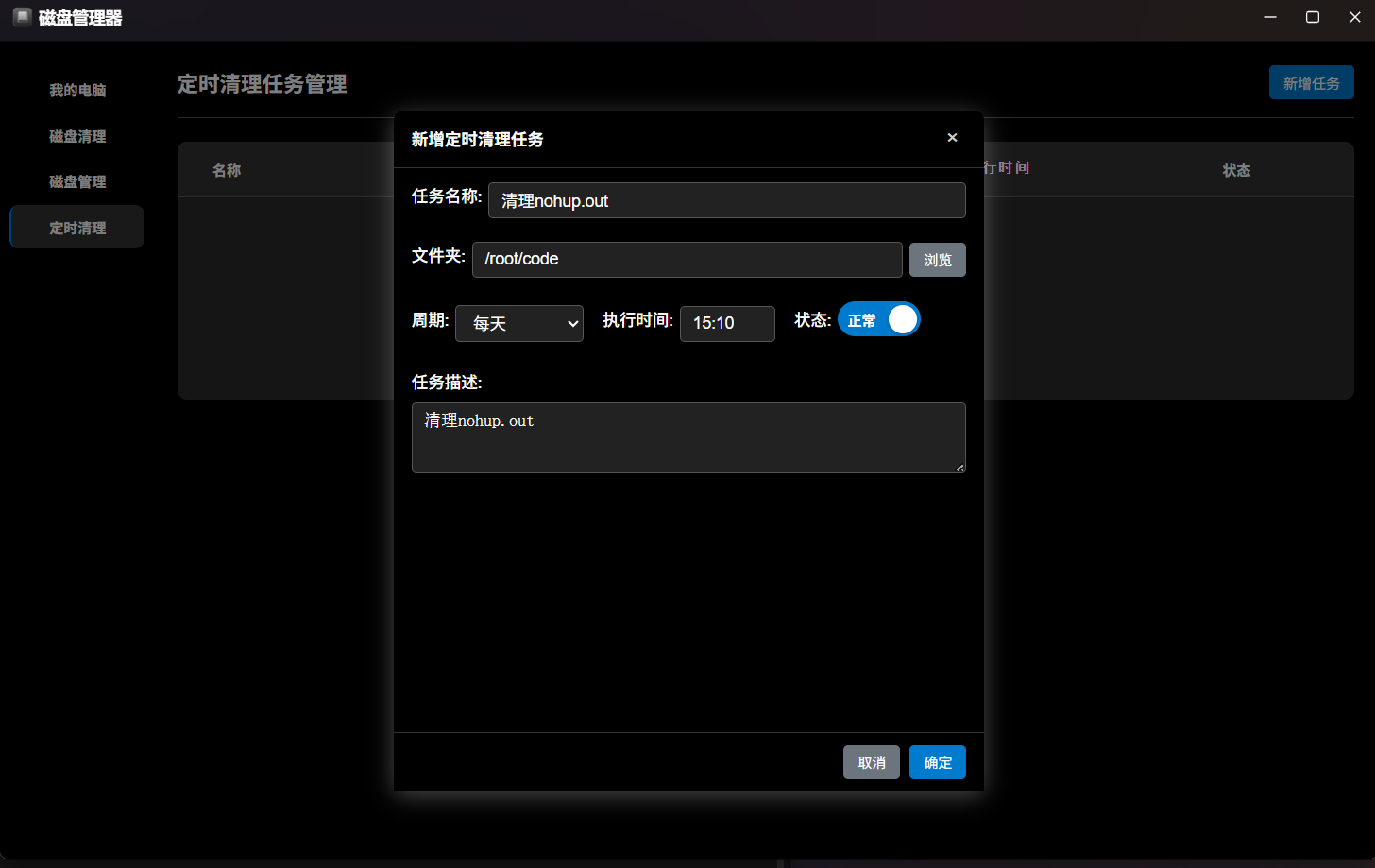 为了防患于未然,GMSSH支持定时清理任务的设定。上图展示了定时任务的配置界面,用户可以指定清理某个目录(如日志存放目录),设置保留天数,由系统自动执行回收逻辑。