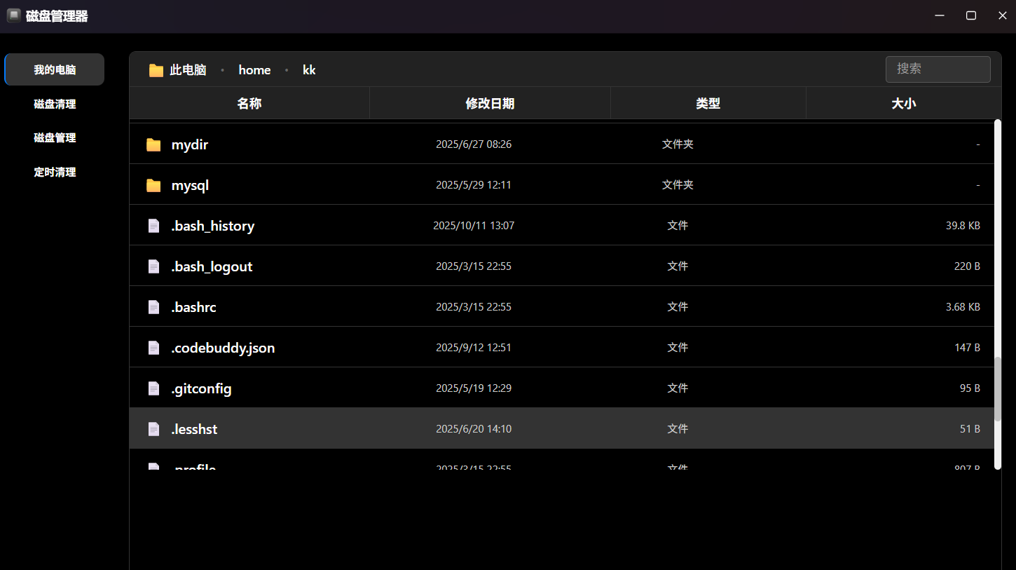 上图体现了文件管理系统的深度集成。每一个文件的大小、修改时间、权限信息都以图标化的形式呈现,极大地提升了文件筛选效率。