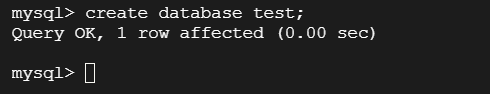 执行 create database test; 语句。上图反馈了数据库创建成功的信息。
