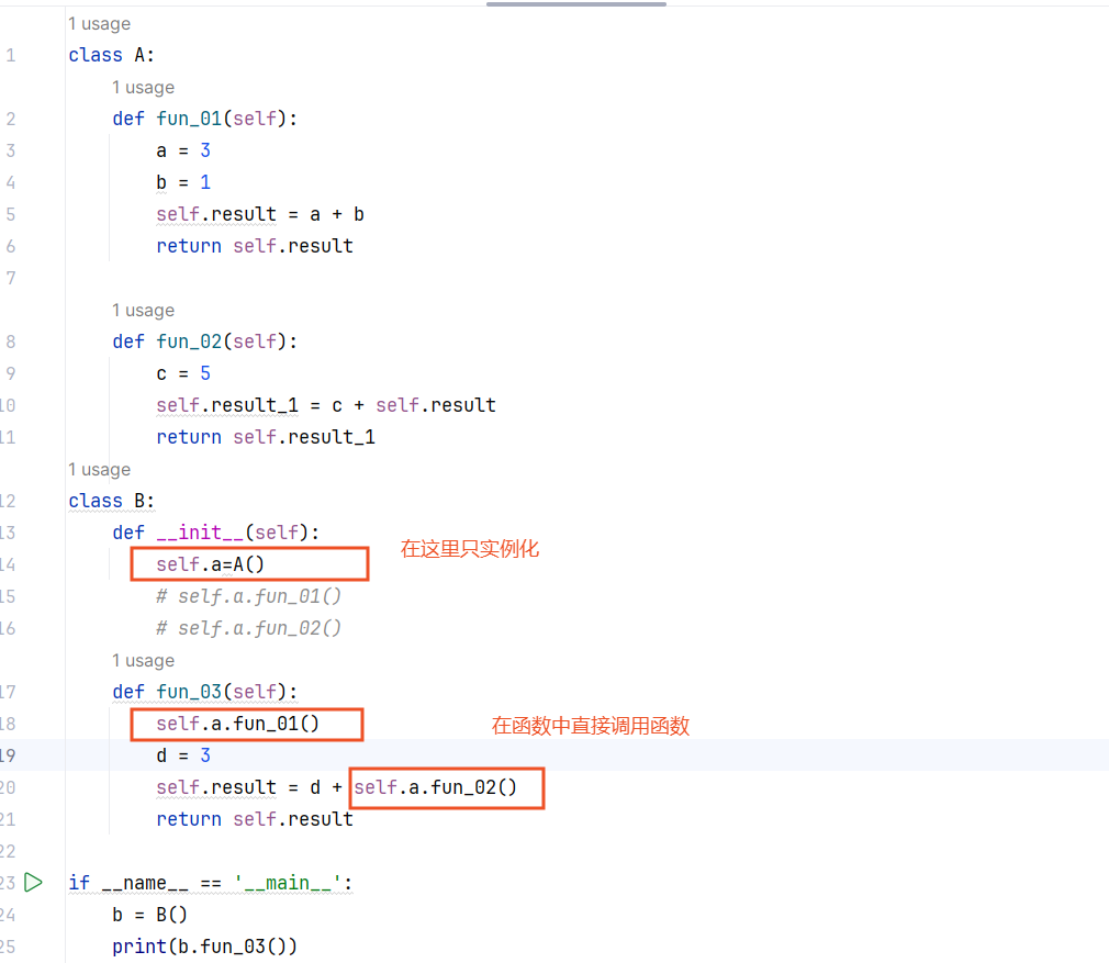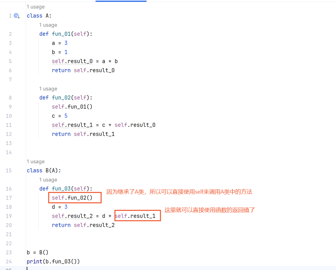 在这里fun01中的返回值self.result 要在fun02中先调用fun_01,那么才可以使用self.result