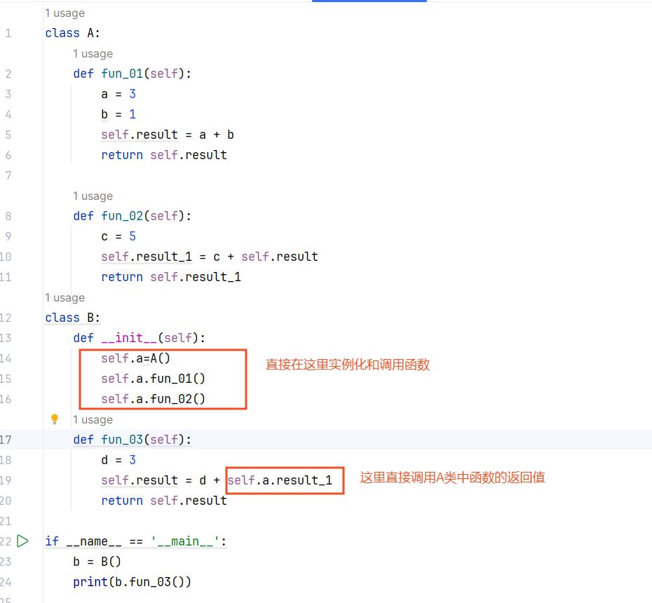 三、在不使用继承,在第二个类里面调用第一个类中的函数(或者第一个类中的函数的返回值)