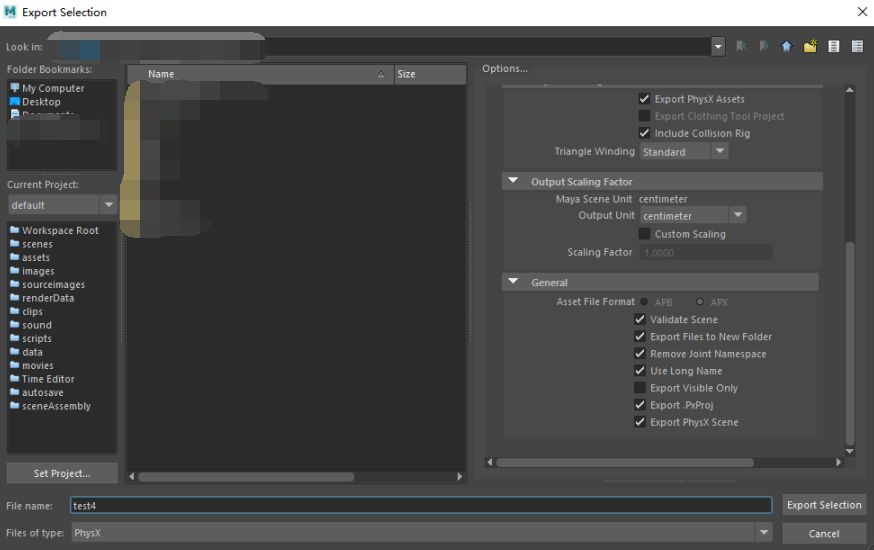 按照如图所示导出即可,选PhysX格式(导出的是一个文件夹里面有xml,apx之类的文件)