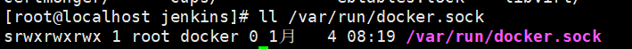 chmod +777 /var/run/docker.sock ------------------------------------------------由于后期需要jenkins 调用docker 所以 授予docker.sock权限,因为一会儿进入jenkins容器的时候要用docker命令