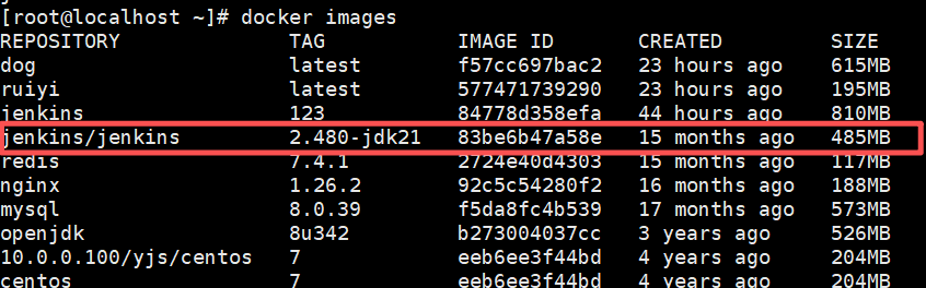 docker pull jenkins/jenkins:2.480-jdk21 ------------------------------------拉取jenkins镜像