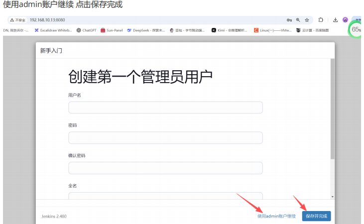 安装完推荐插件之后,创建一个管理员用户