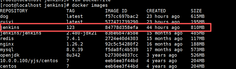 docker build -t jenkins:123 . ------------------------------------------创建镜像,镜像标签为jenkins:123
