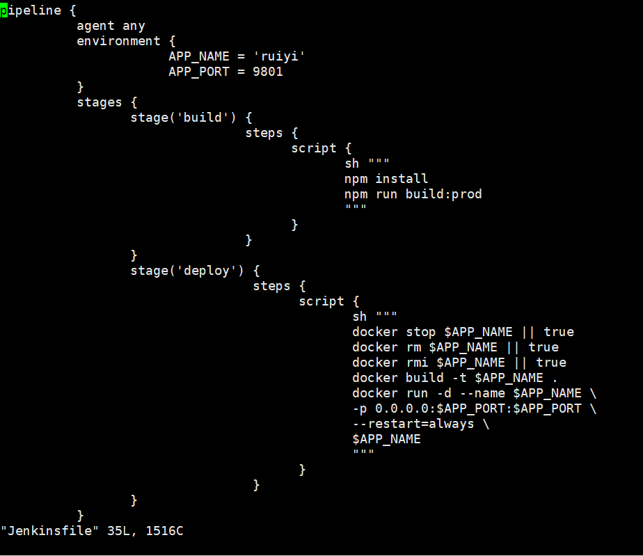 vim Jenkinsfile ------------------------------------------编写流水线文件