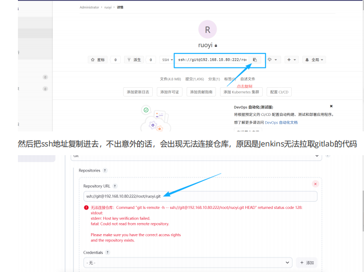 这是因为jenkins与gitlab没有做ssh免密认证。
